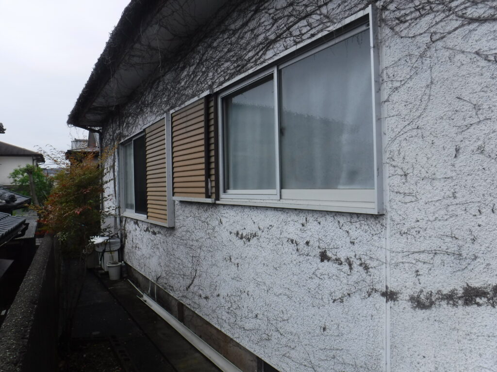 改修前は外壁にツタが覆い、シロアリ被害もあり大規模な修繕が必要でした。